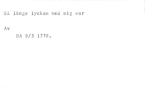 Så länge lyckan med mig war //// Av //// DA 9/3 1770.