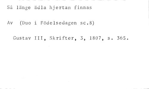 Så länge ädla hjertan finnas Av (Duo i Födelsedagen sc.8) //// Gustav III, Skrifter, 3, 1807, s. 365.