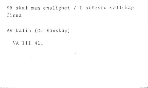 Så skal man enslighet / I största sällskap finna //// Av Dalin (Om Vänskap) VA III 41.