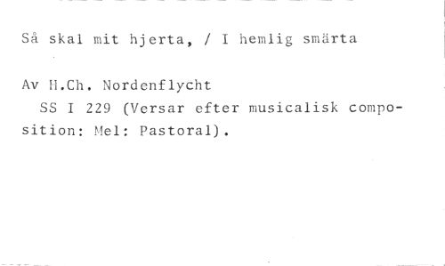 Så skal mit hjerta, / I hemlig smärta //// Av H.Ch. Nordenflycht //// SS I 229 (Versar efter musicalisk composition: Mel: Pastoral).