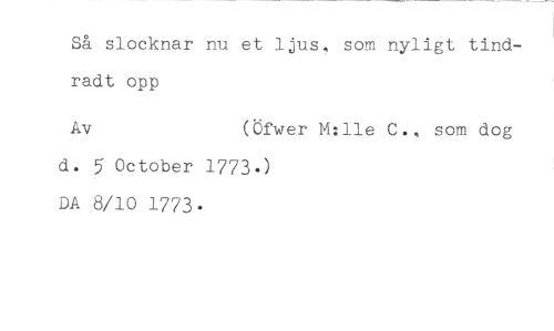 Så slocknar nu et ljus, som nyligt tindradt opp //// Av (Öfwer Malle C., som dog //// d. 5 October 1773.) DA 8/10 1773.