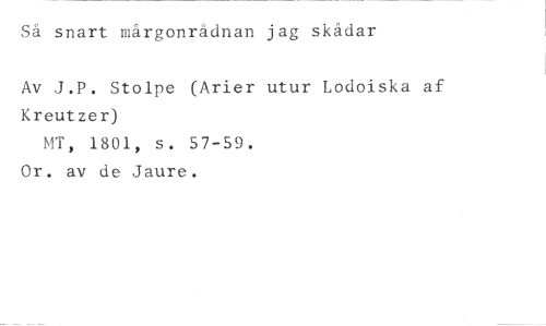 Så snart mårgonrädnan jag skådar //// Av J.P. Stolpe (Arier utur Lodoiska af Kreutzer) //// MT, 1801, s. 57-59. //// Or. av de Jaure.