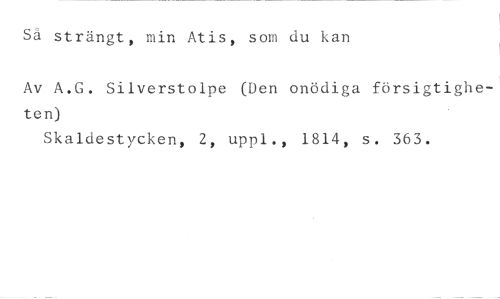 Sa strängt, min Atis, som du kan //// Av A.G. Silverstolpe (Den onödiga försigtighe- //// ten) //// Skaldestycken, 2, uppl., 1814, s. 363.