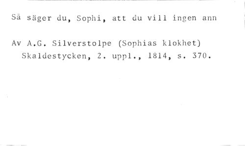 Så säger du, Sophi, att du vill ingen ann //// Av A.G. Silverstolpe (Sophias klokhet) Skaldestycken, 2. uppl., 1814, s. 370.