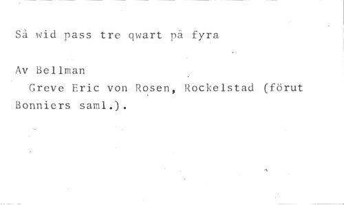 Så wid pass tre gwart nå fyra //// Av Bellman //// Greve Eric von Rosen, Rockelstad (förut Bonniers saml.).