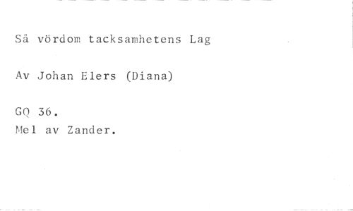 Si vördom tacksamhetens Lag //// Av Johan Elers (Diana) //// GQ 36. //// Mel av Zander.