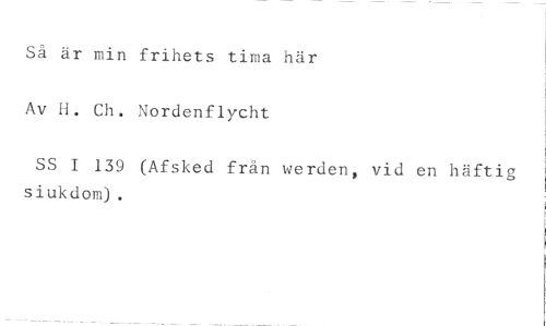 Så är min frihets tima här Av H. Ch. Nordenflycht //// SS I 139 (Afsked frän werden, vid en häftig sjukdom).
