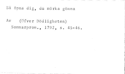 Så öpna dig, du mörka gömma //// Av (Öfver Dödligheten) //// Sommarprom., 1792, s. 45-46.