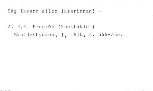 Såg läsarn eller läsarinnant - //// Av F.M. Franzén (Spektaklet) //// Skaldestycken, 1, 1810, s. 355-356.