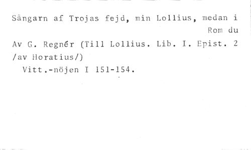 Sängarv af Trojas fejd, min Lollius, medan i Rom. du Av G. Regngir (Till Lollius. Lib. I. Epist. 2 /av Horatiusi) //// Vitt.-nöjen I 151-154.