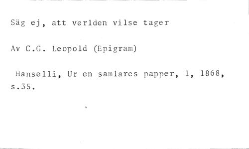 Säg ej, att verlden vilse tager Av C.G. Leopold (Epigram) //// ilanselli, Ur en samlares papper, 1, 1868, s.35.
