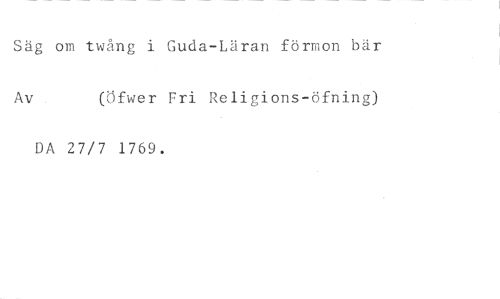 Säg om twang i Guda-Läran förrnon bär //// Av (Öfwer Fri Religions-öfning) //// DA 27/7 1769.