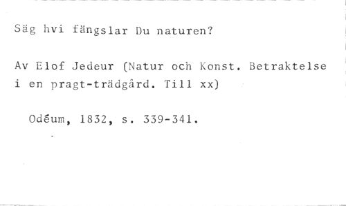 Säg hvi fängslar Du naturen? //// Av Elof Jedeur (Natur och Konst. Betraktelse i en pragt-trädgård. Till xx) //// Od6um, 1832, s. 339-341.