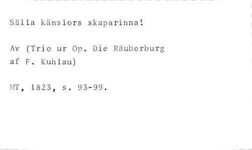 Sälla känslors skaparinna: //// Av (Trio ur Op. Die Räuberburg af F. Kuhlau) //// MT, 1823, s. 93-99.