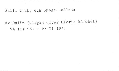 Sälla trakt och Skogs-Gudinna //// Av Dalin (Klagan öfver Cloris hårdhet) VA III 96. - PA Il 104.