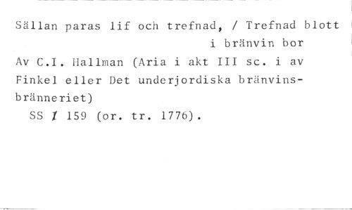 Sällan paras lif och trefnad, / Trefnad blott //// i bränvin bor Av C.I. Hallman (Aria i akt III sc. i av Finkel eller Det underjordiska bränvinsbränneriet) //// SS / 159 (or. tr. 1776).
