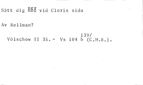 Sätt dig R vid Cloris sida //// Av Bellman? //// 139 //// /Völschow II 35.- Vs 104 b (C.M.B.).