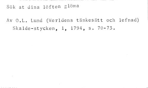 Sök at dina löften glöma //// Av O.L. Lund (Werldens tänkesätt och lefnad) Skalde-stycken, 1, 1794, s. 70-73.