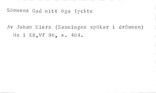 Sömnens Gud mitt öga lyckte //// Av Johan Elers (Sanningen spökar i drömmen) Hs i KB,Vf 96, s. 404.