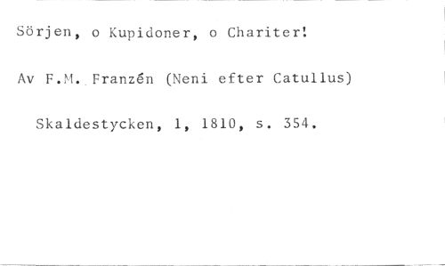 Sörjen, o Kupidoner, o Chariter! //// Av . Franzén (Veni efter Catullus) //// Skaldestycken, 1, 1810, s. 354.
