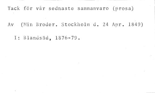 Tack för var sednaste sammanvaro (prosa) //// Av (Min Broder. Stockholm d. 24 Apr. 1849) I: Blandsäd, 1876-79.