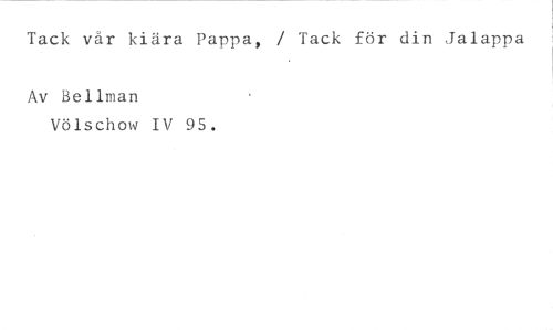 Tack vår kiära Pappa, / Tack för din Jalappa //// Av Bellman //// Völschow IV 95.