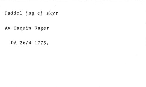 Taddel jag ej skyr //// Av Haquin Bager //// DA 26/4 1775.