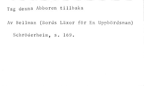 Tag denna Abboren tillbaka //// Av Bellman (Bords Läxor för En Uppbördsman) Schröderheim, s. 169.