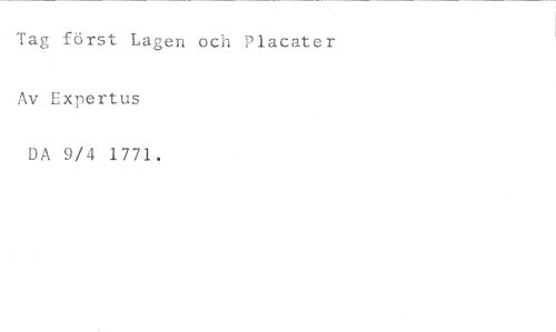 Tag först Lagen och Placater //// Av Expertus //// DA 9/4 1771.