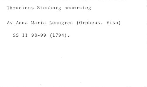 Thraciens Stenborg nedersteg //// Av Anna Maria Lenngren (Orpheus. Visa) SS II 98-99 (1794).