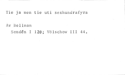 Tie ja men tie uti sexhundrafyra //// Av Bellman //// Sond6n I 120; Völschow III 44.