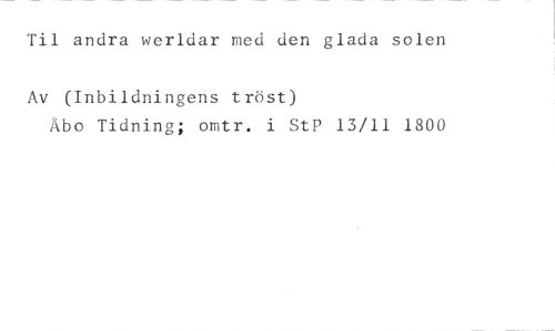 'fil andra werldar med den glada solen //// Av (Inbildningens trist) //// Enbo Tidning; omtr. i Stf? 13/11 1800