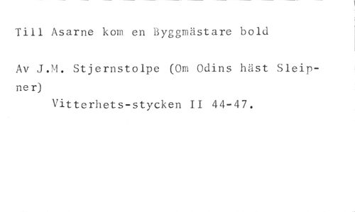 Till Asarne kom en Byggmästare bold //// Av J.M. Stjernstolpe (Om Odins häst Sleipner) //// Vitterhets-stycken II 44-47.