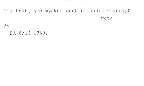 Til Folk, som mycket ondt om andra ständigt //// weta //// Av //// DA 6/12 1769.