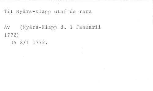 Til Nyårs-Klapp utaf de rara //// Av (Nyårs-Klapp d. 1 Januarii //// 1772) //// DA 8/1 1772.