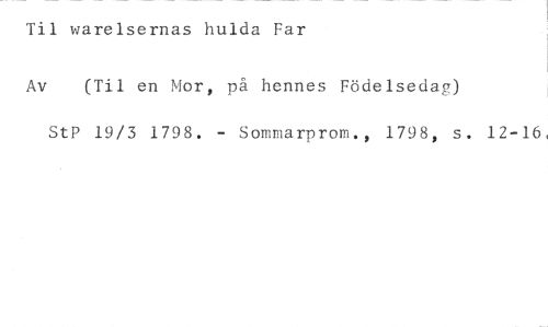Til varelsernas hulda Far //// Av (Til en Mor, på hennes Födelsedag) //// StP 19/3 1798. - Sommarprom., 1798, s. 12-16,