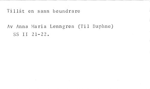 Tillåt en sann beundrare //// Av Anna Maria Lenngren (Til Daphne) SS II 21-22.
