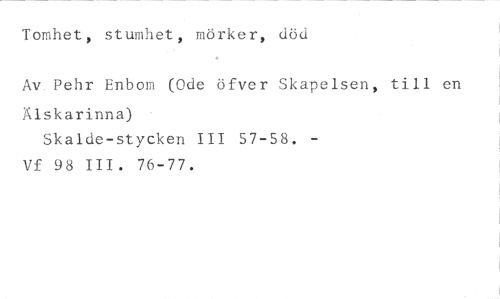 Tomhet, stumhet, mörker, u d //// Av. Pehr Enbom (Ode öfeer Skapelsen, till en //// Älskarinna) //// Skalde-stycken III 57-58. - Vf 98 III. 76-77.
