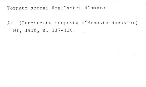Tornate sereni Begl'astri d-amore //// Av (Canzonetta composta d'Ernesto Haeusler) MT, 1816, s. 117-120.
