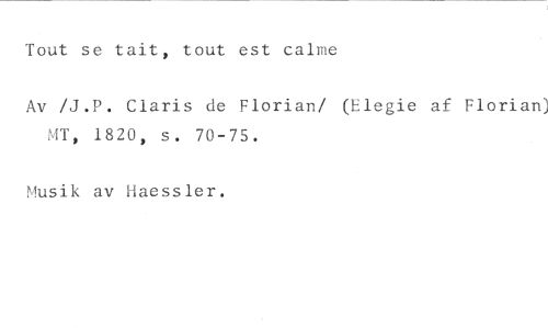 Tout se tait, tout est calme //// Av /J.P. Claris de Florian/ (Elegie af Florian) MT, 1820, s. 70-75. //// Musik av Haessler.