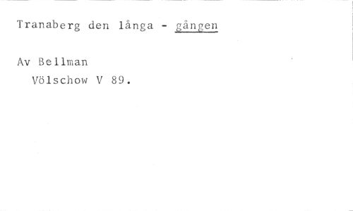 Tranaberg den långa - gången //// Av Bellman //// Völschow V 89.