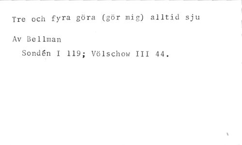 Tre och fyra göra (gör mig) alltid sju //// Av Bellman //// Sonden I 119; Völschow III 44.