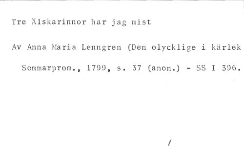 Tre ;'älskarinnor har jag mist //// Av Anna Maria Lenngren (Den olycklige i kärlek Sommarprom., 1799, s. 37 (anon.) - SS I 396.