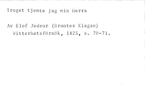 Troget tjente jag min Herra //// Av Elof Jedeur (Bruntes Klagan) Witterhetsförsök, 1825, s. 70-71.