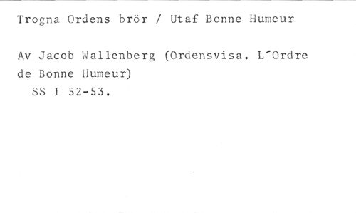 Trogna. Ordens brör / Utaf Bonne humeur //// Av Jacob Wallenberg (Ordensvila. L'Ordre de Bonne Humeur) //// SS 1 52-53.