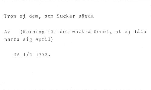 Tron ej dem, som Suckar sända //// Av (Warning för det vackra Könet, at ej låta //// narra sig April) //// DA 1/4 1773.