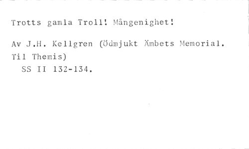 Trotts gamla Troll: Mångenighet! //// Av J.H. Kellgren (Ödmjukt Ämbets Memorial. Til Themis) //// SS II 132-134.
