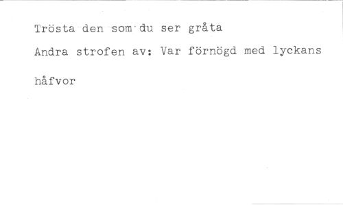 Trösta den som-du ser gråta //// Andra strofen av: Var förnögd med lyckans //// håfvor