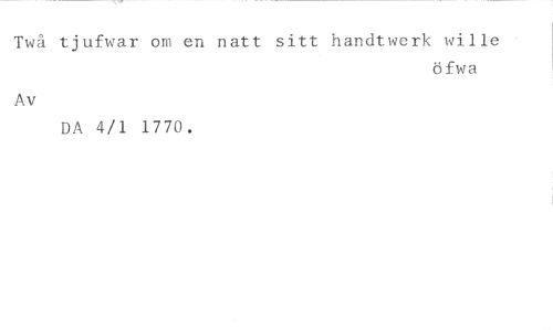 Twå tjufwar om en natt sitt handtwerk wille //// öfwa //// Av //// DA 4/1 1770.