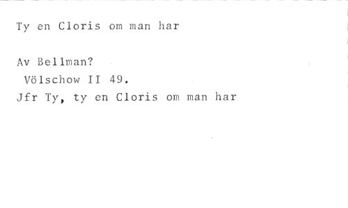 Ty en Cloris om man har //// Av Bellman? //// Völschow II 49. //// Jfr Ty, ty en Cloris om man har